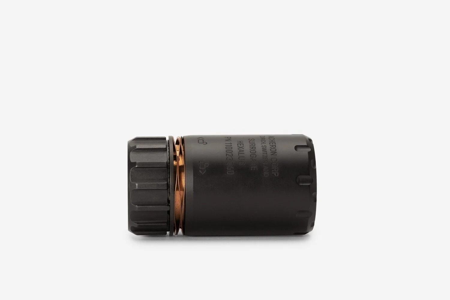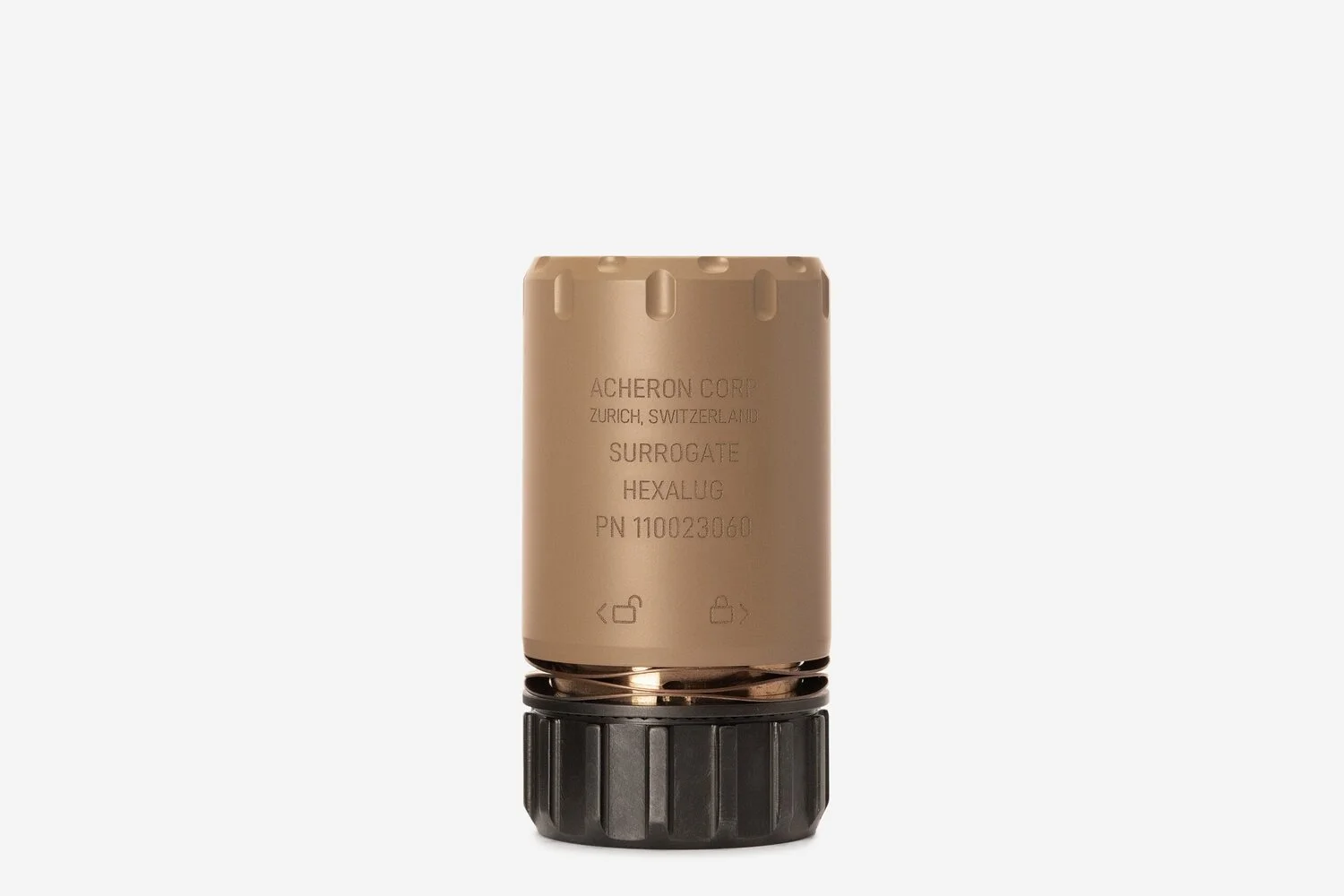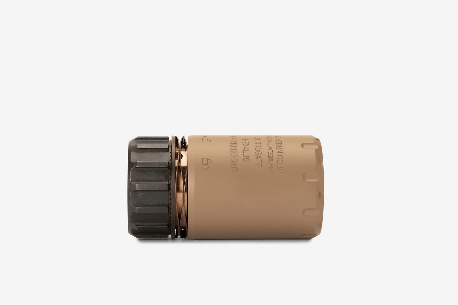Der Surrogate ist ein Deflector bzw. Druckabweiser, welcher die austretenden Gase nach vorne ableitet. Durch deren Einsatz reduziert sich die Belastung des Schützen und seiner Nachbarn auf dem Schiessplatz. Ebenfalls wird das Aufwirbeln von Staub und Bleirückstände, welche sich am Boden ansammeln, merklich reduziert. Deflectoren sind keine Schalldämpfer, sie reduzieren nicht den Mündungsknall, sondern dienen lediglich zur Umlenkung des Mündungsfeuer. Die Befestigung erfolgt schnell und sicher mittels HexaLug Schnellmontagesystem auf die Acheron HexaLug Mündungsbremse. Surrogate ist nicht kaliberspezifisch und passt auf sämtliche HexaLug Mündungsaufsätze. Nicht kompatibel mit HexaLug L und HexaLug XL Mündungsaufsätzen. Als Oberflächenfinish kommt die hitzebeständige C-Serie von Cerakote zum Einsatz. Entwickelt, hergestellt, beschichtet und zusammengebaut in der Schweiz.