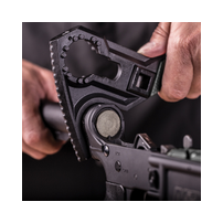 Dieses hochwertig verarbeitete Tool ist unzerstörbar und garantiert beste Ergebnisse und materialschonendes Arbeiten an Ihrem AR15. Die ergonomische Formgebung sorgt dafür, dass auch hartnäckige, verkrustete Laufmuttern oder die Castle Nut mühelos zu lösen ist, ohne die Waffe oder die Muttern zu beschädigen. Das Werkzeug hält unter Druck seine Form und hat tiefliegende Nocken, um die Muttern zu greifen und sie zu halten. Mit dem Befestigungspunkt für den Drehmomentschlüssel kann die genaue und kritische Drehmomentanpassungen an allen Muttern und festen Receiververlängerungen vorgenommen werden. Einziges AR-15 Werkzeug mit integriertem, voll funktionsfähigen und anpassbaren Waffenhammer.