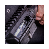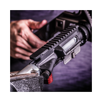 Dieses Tool hält den Upper offen um Reinigungsarbeiten schnell, sicher und ohne Mühe auszuführen. Der Schaft wird in einem optimalen Winkel offen gehalten, damit der Pustzstock zum Einsatz kommen kann. Der Smart Lock Bore Guide schützt das Patronenlager und den Lauf vor Beschädigungen, indem er verhindert, dass sich der Putzstock biegt und an der Laufwand kratz. Die mitgelieferte Pivot Lock hält die Waffe während der Reinigung der Sternkammer offen