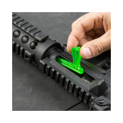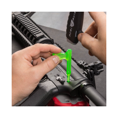 Ein must-have für die Reinigung des AR-15. Set bestehend aus Putzstockführung und Link. Der hält die obere und untere Baugruppe offen und ermöglicht so eine komfortable Laufreinigung. Aus Delrin und Edelstahl gefertigt, sind diese Teile unempfindlich gegen Lösungsmittel. Der Cleaning Link verwendet den hinteren Verriegelungsstift und das hintere Verriegelungsstiftloch und lässt sich in Sekunden installieren. Die Putzstockführung hat eine Öffnung um Oel oder Reinigungsmittel direkt auf die Bürste bzw. den Patch zu geben.