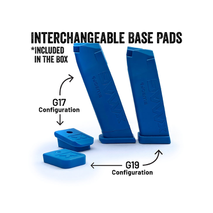 Glock Pistolen mit 9mm double-stack Magazine wie G17, G19, G26, G34, G45, G47, G17L, G19X (Gen. 2-5), sowie Klone wie ZEV, Shadow-Systems, BUL, HellFire usw.