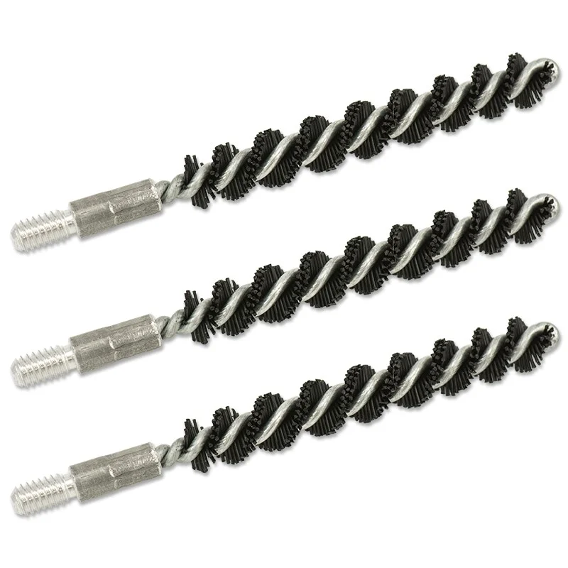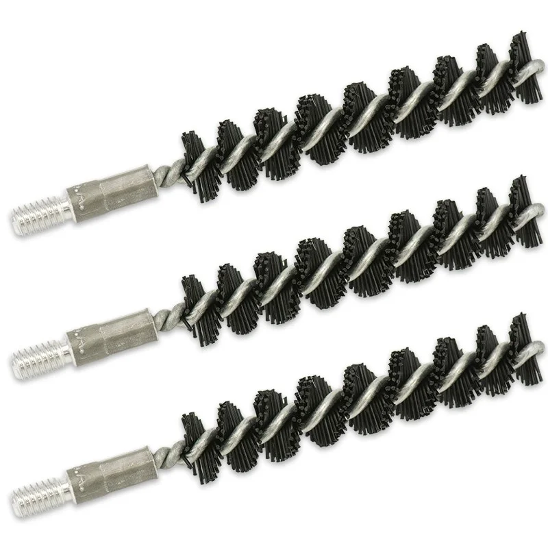 Wem die Drahtbürsten zu hart bzw. zu aggressiv für den Lauf sind, der sollte unbedingt die Nylonbürsten von BoreTech probieren. Diese Bürsten haben sehr harten Borsten, sind Laufschonend und bieten dennoch eine sehr gute Reinigungswirkung. Während Bronze- und Messingbürsten zusammen mit chemischen Laufreiniger eine Verfärbung von sich geben, ist das hier nicht der Fall