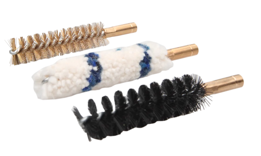 Stilcrin Brüsten als 3er-Spar-Paket, jeweils mit einer Bronzebürste, einer Nylonbürste und einem Wollwischer. Die Bürsten sind auf das jeweilige Kaliber abgestimmt und haben alle das gleiche Gewinde. Alle Stilcrin Bürsten-Set haben ein 1/8" Gewinde - ausser das Kalbier 12 Set, welches ein M5 Gewinde hat. Passende Putzstöcke dazu finden Sie hier sollten Sie Übergangsstücke / Gewindeadapter benötigen für andere Putzstöcken, dann werden Sie hier fündig.