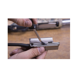 Diese Putzstock-Führung auch bekannt als "falsches Schloss" hat eine Universal-Passform für Gewehre im Kaliber von .223REM bis .375 (5.5mm bis 9.5mm). Dank durchdachter Konstruktion passt es sich perfekt am Gewehr an und ermöglicht eine schonende Laufreinigung. Der Schieber ist mit einer Feder versehen und rastet ein, damit alles sicher und fest hält. Das Rohr ist eloxiert und damit äussert sehr langlebig. Mitgeliefert werden 3 Spitzen für die Kaliberspezifische Laufreinigung. Kompatibel für LongAction LA und ShortAction SA repetierer, sowie AR-Plattformen. Eine saubere Abdichtung beim Patronenlager sorgt dafür, dass kein Lösungsmittel ins Gehäuse gelangt.