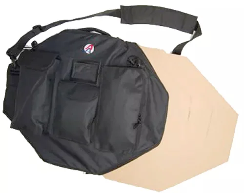 Die neuen Taschen für Zielscheiben sind aus strapazierfähigem 600D Polyester-Material, um eine lange Lebensdauer zu gewährleisten. Das Hauptfach ist dafür ausgelegt ca. 12 Zielscheiben zu fassen. An der Vorderseite befinden sich drei weitere Taschen: Die erste Tasche wird mit einem Klettverschluss verschlossen und ist dafür ausgelegt, den Target Taper / Deluxe Tape Applikator oder ein ähnliches Gerät zu halten. Die mittlere Tasche wird ebenfalls mit einem Klettverschluss verschlossen und ist dafür ausgelegt, Patches oder andere Materialien zu halten, und die dritte größere Tasche mit dem umlaufenden Reißverschluss ist ein allgemeiner Zweckbereich, in dem Sie Rollen Klebeband, einen Tacker, Werkzeuge und alles andere, was Sie auf dem Schießstand zur Vorbereitung Ihrer Ziele benötigen, tragen können