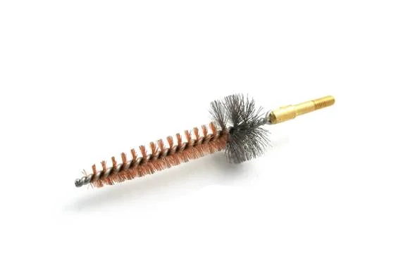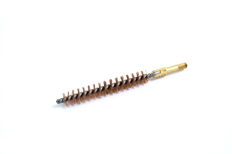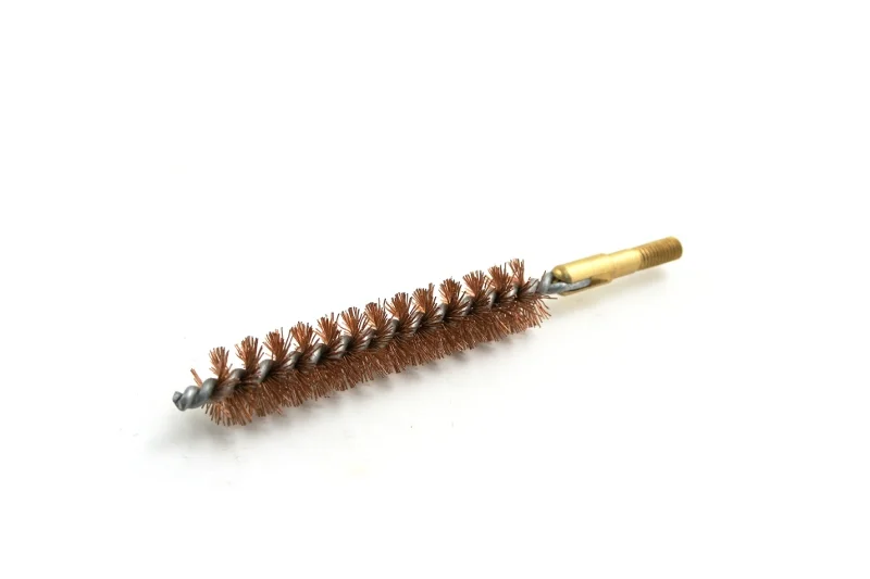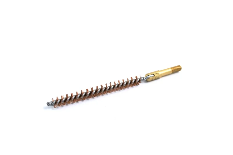 Niebling Bürsten werden in Deutschland hergestellt und sind in zwei Varianten erhältlich. Einmal in der Standardausführung "weich" (linke Spalte) und einmal in der Ausführung "hart" (rechte Spalte). Letztere ist etwas dichter gewickelt und benötigt dadruch etwas mehr Kraft beim Reinigen. Niebling Bürsten überzeugen nebst dem guten Preis-Leistungsverhältnis auch durch ihre Stabilität. Diese wird durch die Drahtfixierung im Gewindeschaft und der langen Einführhilfe erreicht. Diese Bronzebürsten haben ein M4x1 Aussengewinde bzw. M3x1 bei 4.5mm und werden einzeln in praktischen Aufbewahrungs-Tubes geliefert. Weiter unten finden Sie nützliche Patronenlager-Bürsten für 223REM und 7.62mm Gewehre