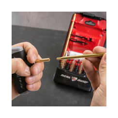 Das Multi-Kit von RealAvid ist ein Putzset, welches auf das jeweilige Kaliber abgestimmt ist. Es enthält bereits eine Putzschnur (Bore Boss) und alles was für die Lauf- und Waffenreinigung benötigt wird, wie Putzstock mit T-Griffstück, Phosphor-Bronzebürsten, Nylonbürsten, Lauf-Mop, 25 Patches und weitere Bürsten und Tools für die Reinigung. Das Set kommt in einem robusten Case, wo alles seinen Platz hat.