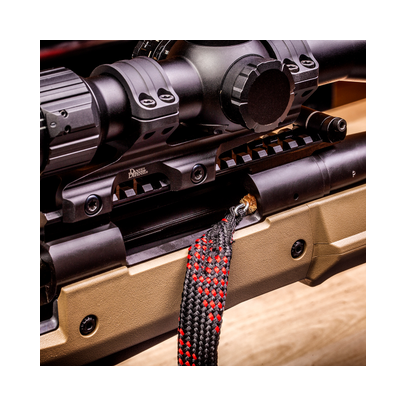 Das hochwertige Putzmaterial ist in einer robusten Nylontasche (Durchmesser ca. 10-12cm) mit Gurtschlaufe untergebracht, die Putzschnur hat beidseitig ein Innengewinde und ist aus Memory-Flex®, sie ist beschichtet um den Lauf nicht zu beschädigen und hält eine Zugkraft von über 300kg aus. Das Set enthält Putzschnur, eine Tube Solvent/Laufreiniger, mehrere Patches, Bronzebürsten und einen Patchhalter - erweiterbar mit RealAvid oder BirchwoodCasey Bürsten