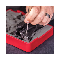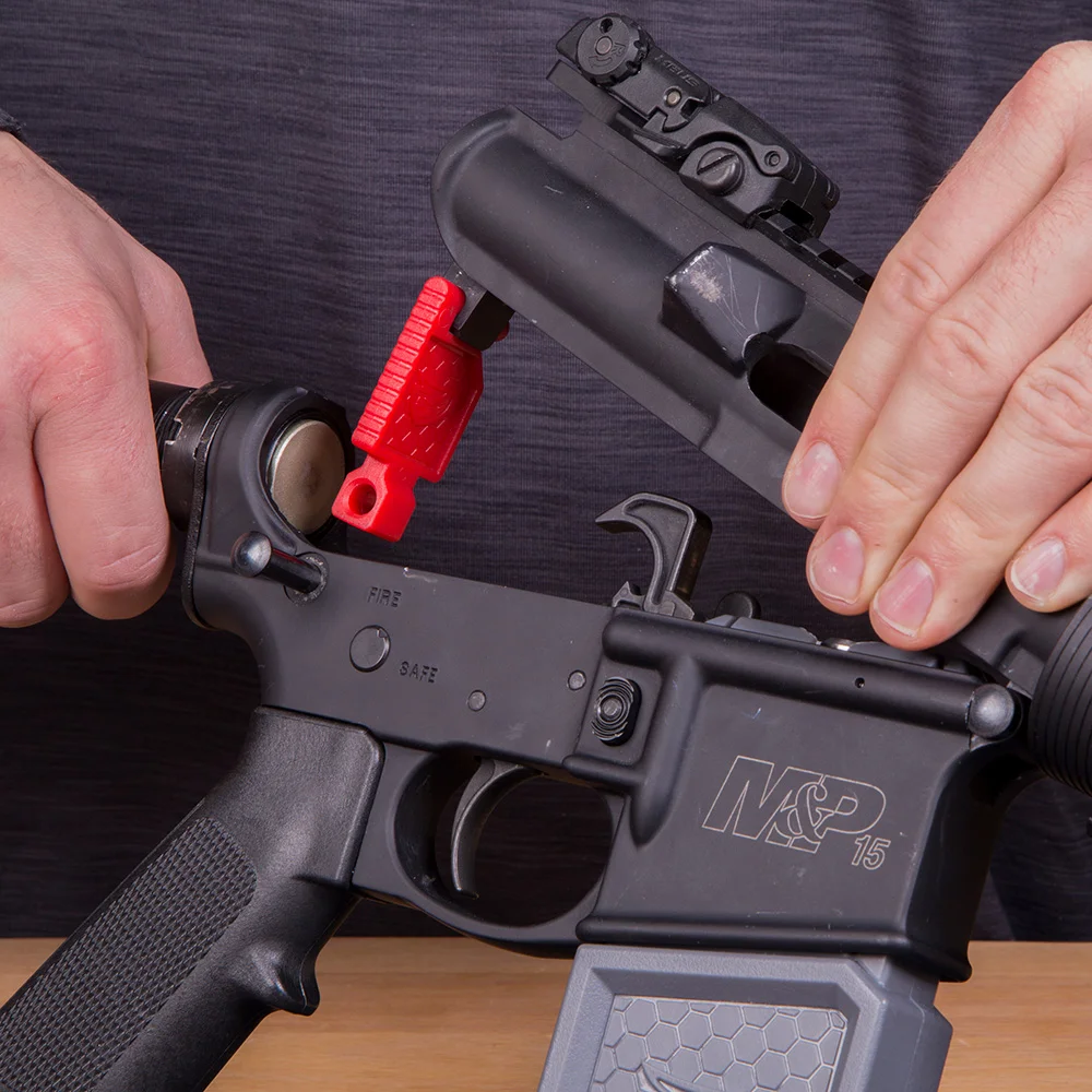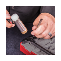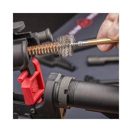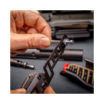 Dieses Tool hält den Upper offen um Reinigungsarbeiten schnell, sicher und ohne Mühe auszuführen. Der Schaft wird in einem optimalen Winkel offen gehalten, damit der Pustzstock zum Einsatz kommen kann. Der Smart Lock Bore Guide schützt das Patronenlager und den Lauf vor Beschädigungen, indem er verhindert, dass sich der Putzstock biegt und an der Laufwand kratz. Die mitgelieferte Pivot Lock hält die Waffe während der Reinigung der Sternkammer offen