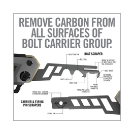 - Cleans carbon from all critical surfaces to keep bolts cycling smoothly