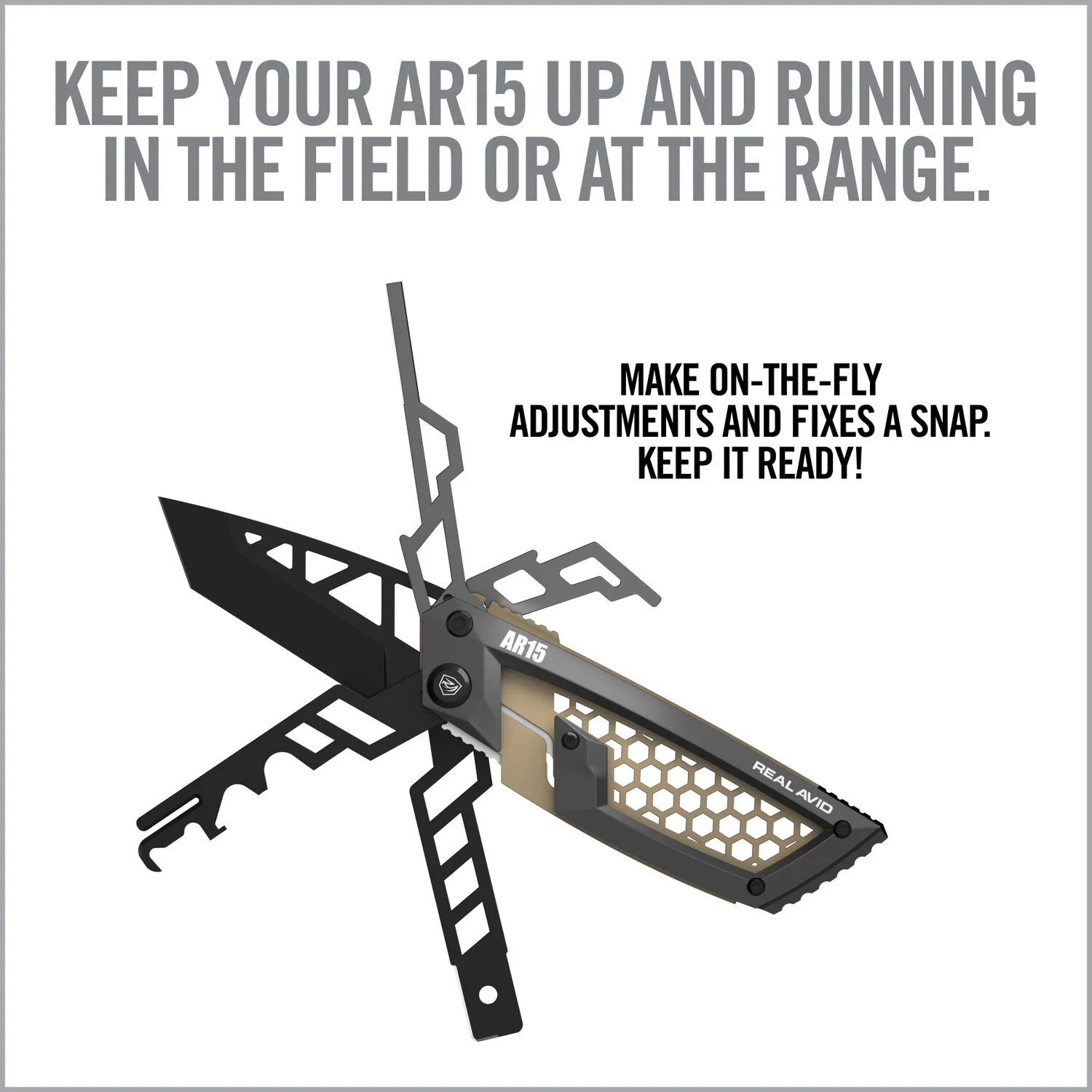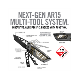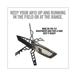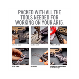 Keep your AR15 up and running in the field or at the range with features like specialized carbon scrapers for every BCG surface, a full array of common AR15 related bits and implements and a fold-out driver to make on the fly adjustments and fixes a snap. Keep your AR15 up and running in the field or at the range with features like specialized carbon scrapers for every BCG surface, a full array of common AR15 related bits and implements and a fold-out driver to make on the fly adjustments and fixes a snap. Keep it Ready