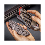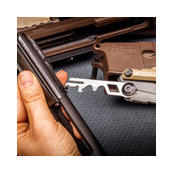 Tactical knife and multi-tool for AR15 - The Gun Tool Edge - AR15 is designed for AR15 enthusiasts, combining functionality and sleek design in a single, compact framework. Designed to cater to the intricate needs of AR15 operators, this tool integrates a versatile selection of maintenance essentials, including a razor-sharp 2.6" Tanto blade, and an array of dedicated bolt carrier group scrapers. Each component, from the premium titanium and black oxide finishes to the stainless steel construction, underscores a commitment to durability and precision. Its innovative design ensures that crucial maintenance tasks can be performed efficiently, whether in the field or at the range. This tool's integration of a bolt override, takedown punch, tap hammer and firing pin retaining pin puller further extends its utility, making it indispensable for ensuring the optimal performance of the AR15. Compact and rugged, the Gun Tool Edge - AR15 redefines the standards of portable firearm maintenance tools, solidifying its role as a critical carry item for any AR15 user.