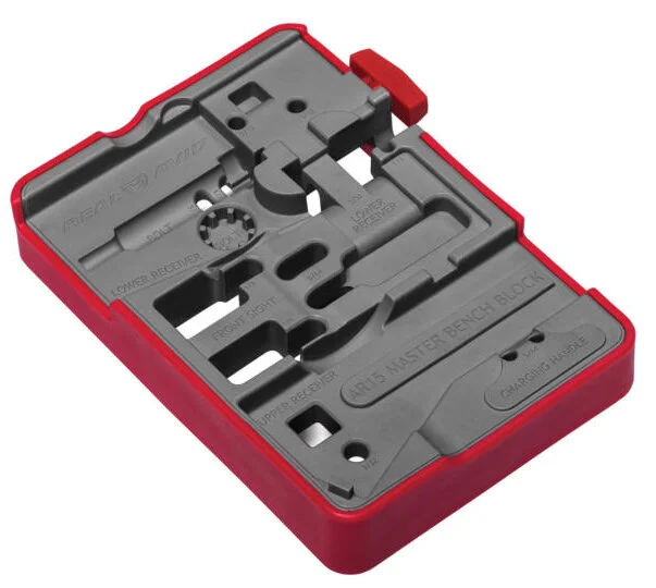 Der Vise Block ist eine clevere Schraubstock-Halterung passend zum AR15 Gewehr. Damit lässt sich jedes AR15 sauber und schonend in einem Schraubstock festmachen. Beide Händen sind nun frei, nichts fällt herunter oder verschiebt sich. Ideal um den Lauf und den Receiver zu reinigen aber auch für AR15-Tuning-Arbeiten. Einfach in den Magazinschacht einstecken und den roten, unteren Verschluss soweit drehen bis alles optimal hält. Kann von unten oder auch von oben im Receiver verwendet werden. Passend zu allen AR15 in .223REM, erweiternde Abschnitte passen für jeden Magwell, mit Magazinsperre. Ein sehr nützliches Tool um das AR15 schonend zu reinigen und vor Kratzern zu schützen