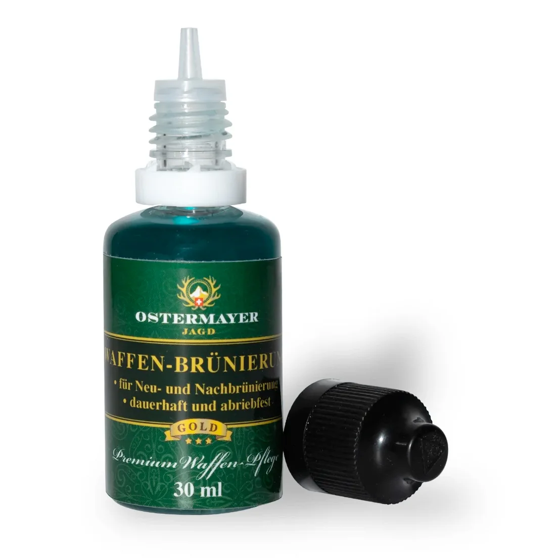 Die Ostermayer Waffen-Brünierung eignet sich hervorragend zum Ausbessern beschädigter Brünierungen bei Waffen oder zum brünieren von kompletten Waffenteilen. Selbstverständlich können auch andere Eisen und Stähle bis zu einem Chromegehalt von etwa 3% brüniert werden. Das Ergebnis ist tiefschwarz- glänzend. Für Beste Ergebnisse sollten die Teile gut vorbereitet werden, bei Ausbesserung beschädigter Brünierung empfehlen wir die Entfettung der Teile. Danach kann die Waffen-Brünierung mit Hilfe des Pinselstiftes aufgetragen werden.