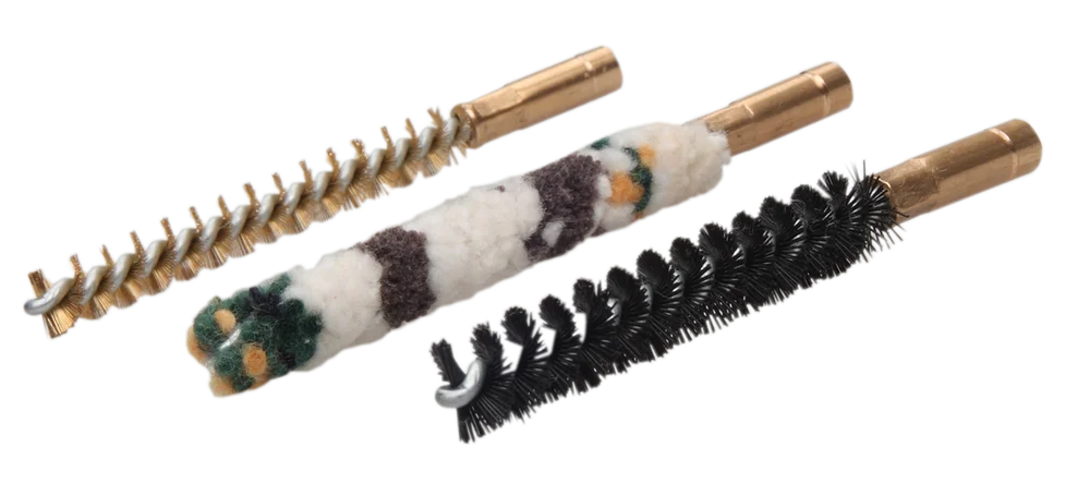 Stilcrin Brüsten als 3er-Spar-Paket, jeweils mit einer Bronzebürste, einer Nylonbürste und einem Wollwischer. Die Bürsten sind auf das jeweilige Kaliber abgestimmt und haben alle das gleiche Gewinde. Alle Stilcrin Bürsten-Set haben ein 1/8" Gewinde - ausser das Kalbier 12 Set, welches ein M5 Gewinde hat. Passende Putzstöcke dazu finden Sie hier sollten Sie Übergangsstücke / Gewindeadapter benötigen für andere Putzstöcken, dann werden Sie hier fündig.