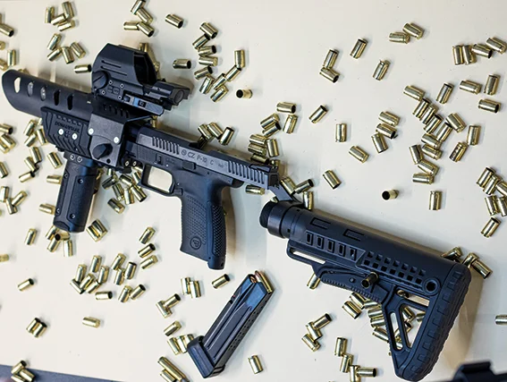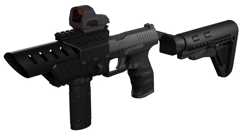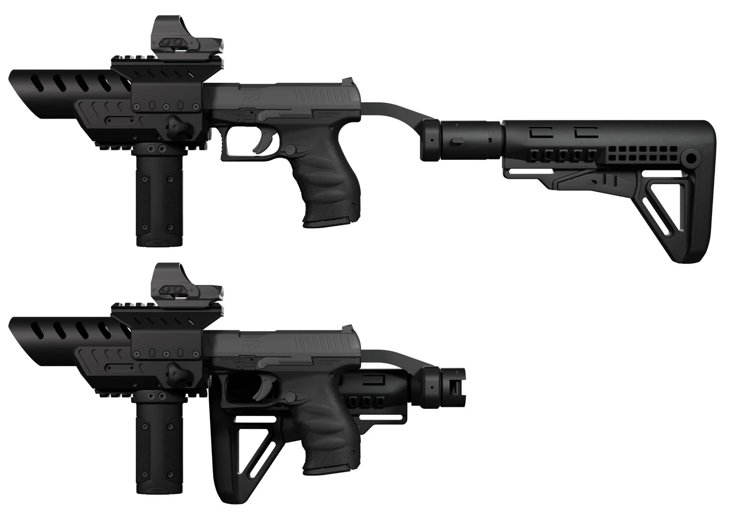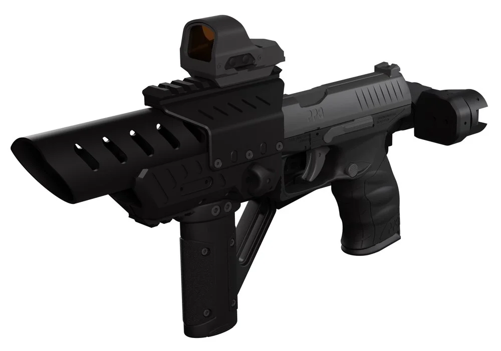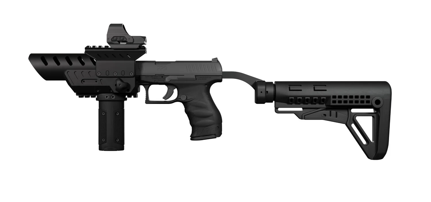 - Masse: ca. 530 g (ohne Schulterstütze und Vordergriff)