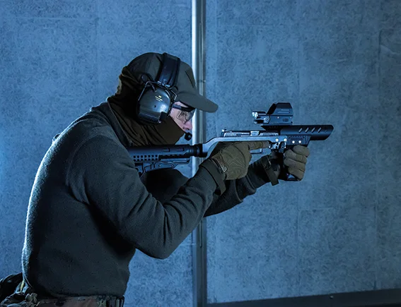 - Verminderte Blendwirkung bei Schussabgabe durch integrierten Mündungsfeuerdämpfer