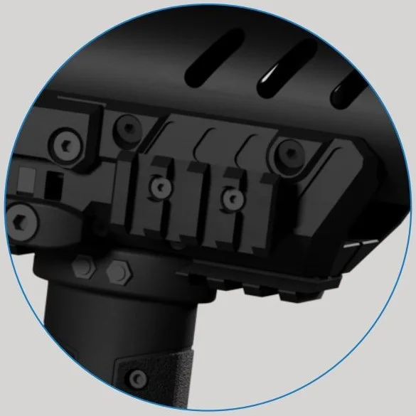- Bis zu 4 integrierte Picatinny-Schienen ermöglichen die Montage zahlreicher Anbauteilkombinationen
