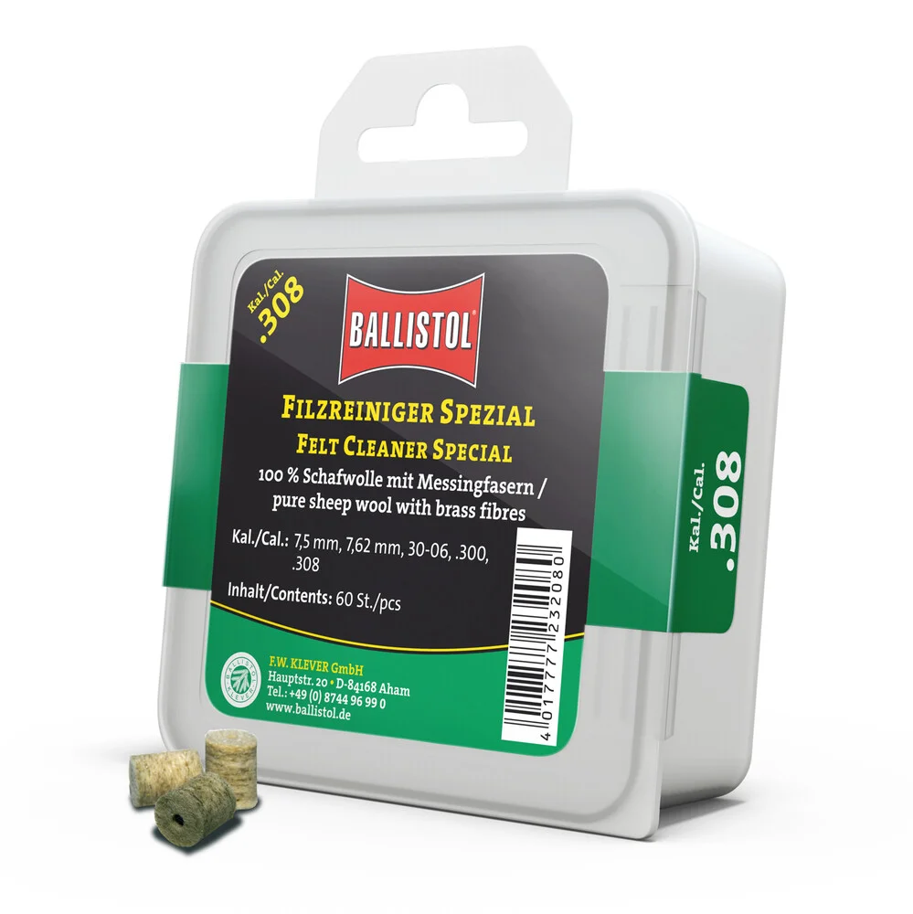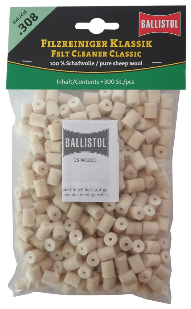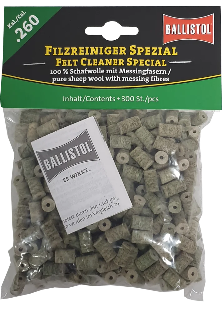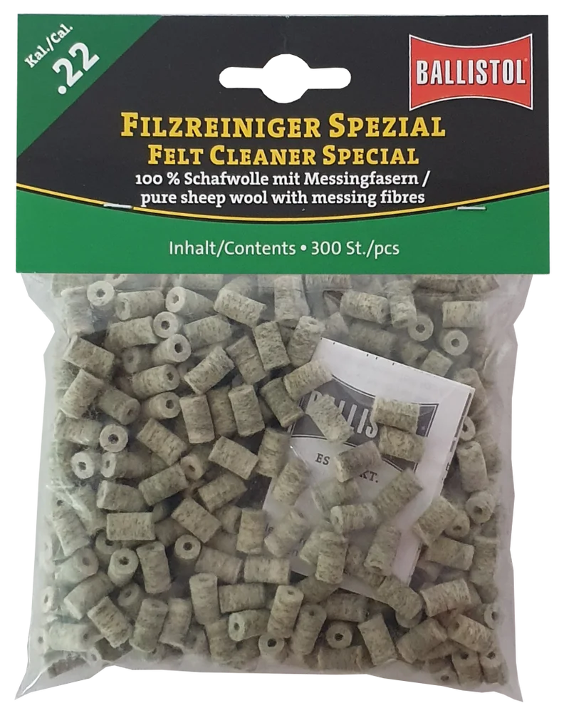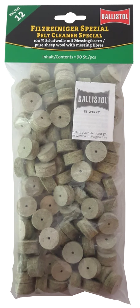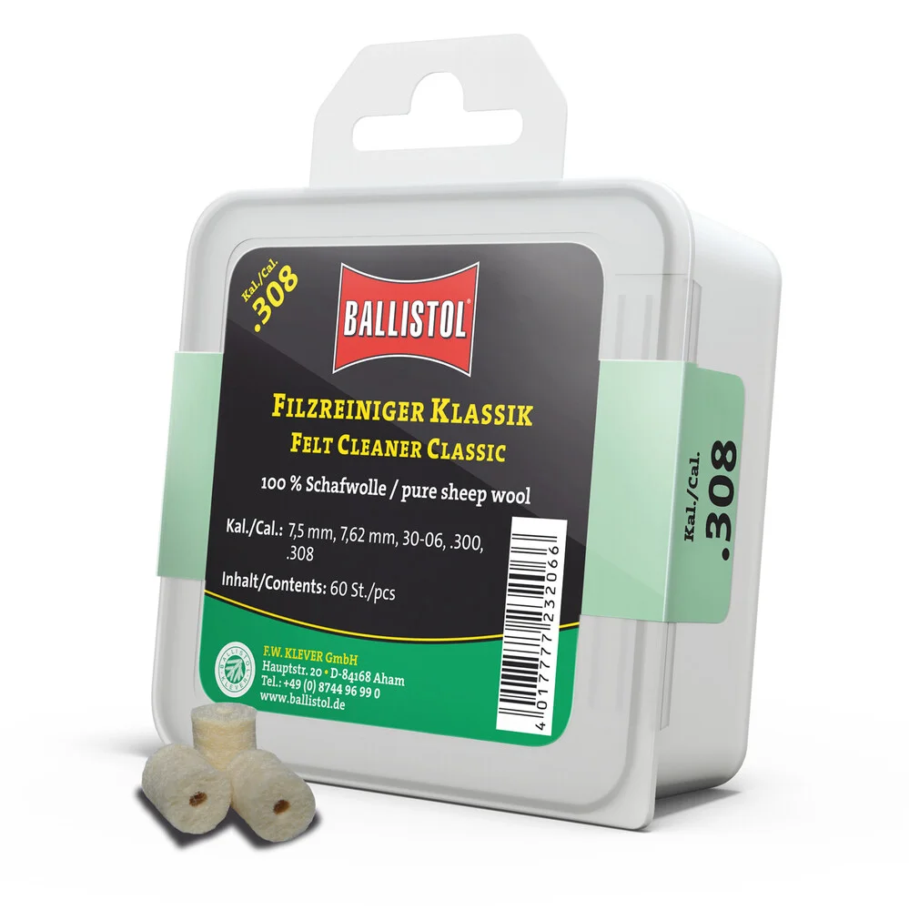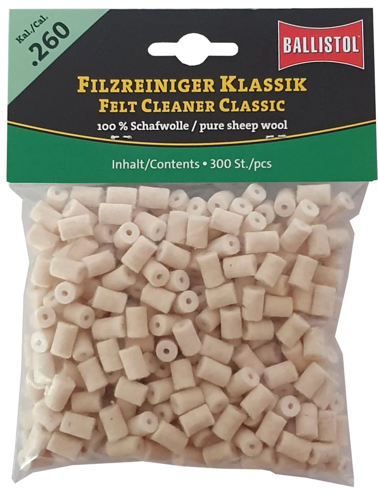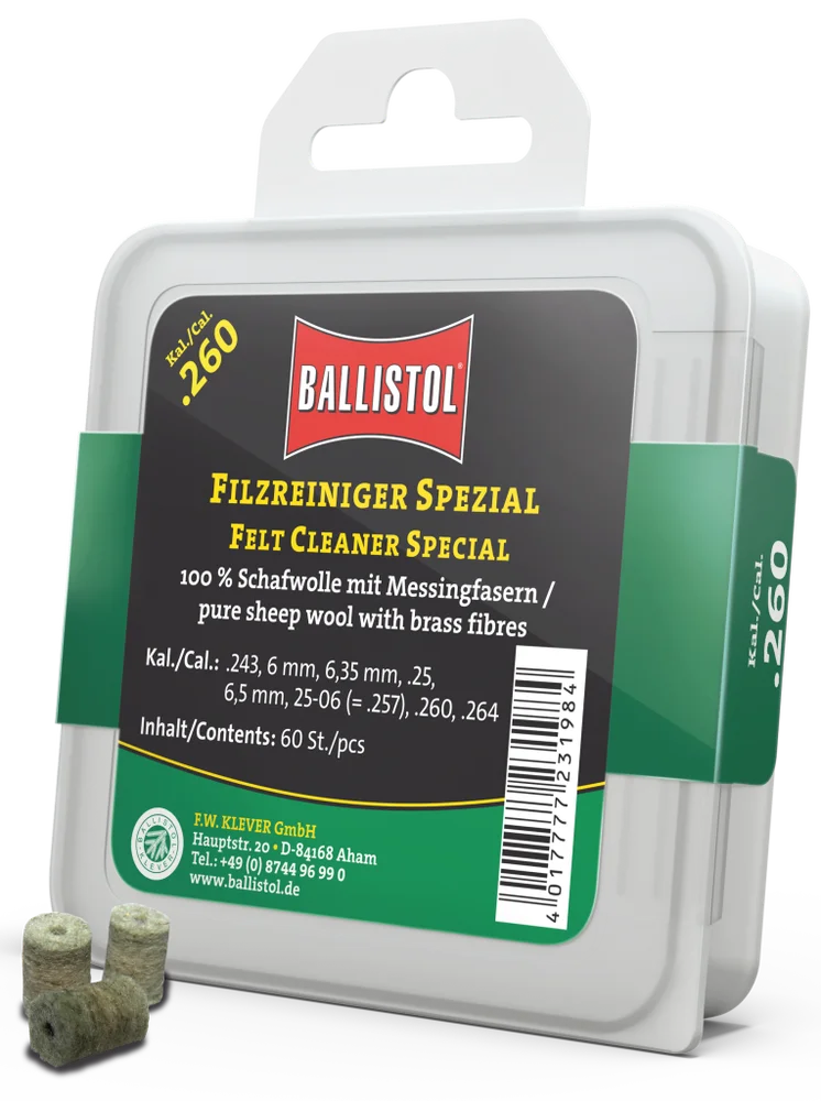 KLASSIK & SPEZIAL - so heissen die beiden brandneuen Filzereiniger von Ballistol. Die Filze sind optimiert auf das jeweilige Kaliber und passgenau gefertigt. Erhältlich als Klassik (100% Schafwolle) und Spezial (Schafwolle + Messingfasern). Die Ballistol Filze bieten eine Alternative zu Metallbürsten und Patches, werden aber idealerweise zusammen mit diesen eingesetzt. Diese Filze können gröbere aber auch sehr feine Schmutzpartikel aufnehmen, festhalten und aus dem Lauf befördern.