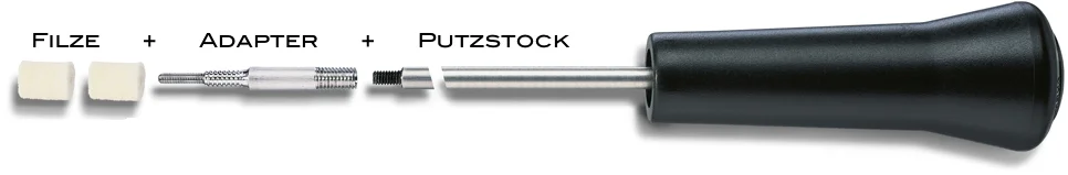 Zwei unterschiedliche Hersteller - ein Konzept. Filze sind für die Laufreinigung und -Pflege sind praktisch, zeitsparend und hocheffizient. Sowohl Ballistol als auch VFG bieten zwei verschiedene Reihen: einmal reine Baumwollfilze (Klassik / Comfort) und einmal Baumwollfilze mit Metallfasern (Spezial / Intensiv). Passende Putzstock-Adapter für die Aufnahme der Filze finden Sie weiter unten auf dieser Seite: