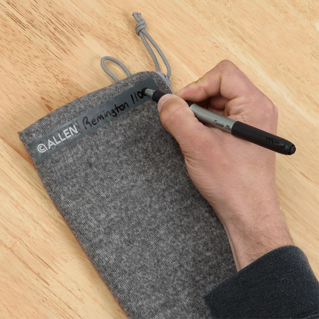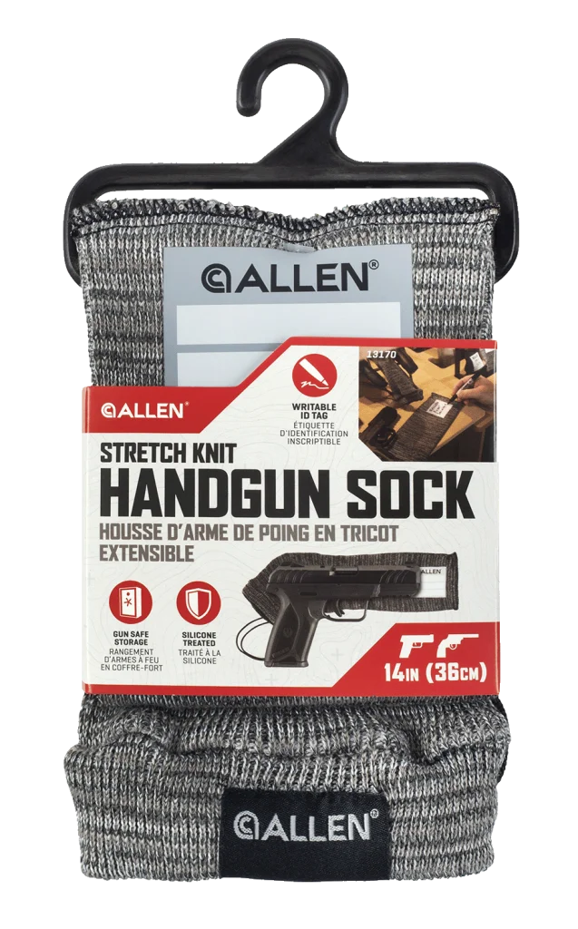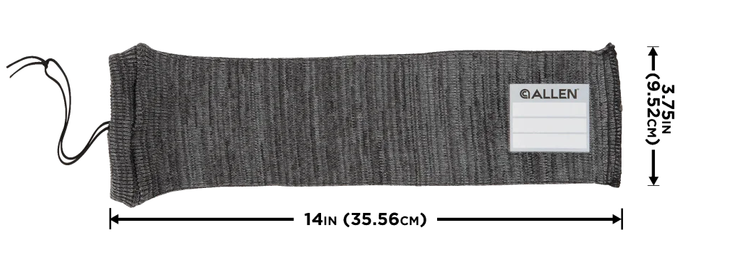 Gestrickter und elastischer Waffenstrumpf für Faustfeuerwaffen bis 8" Lauf. Mit Kordelzug, bietet es den idealen Schutz im Waffenschrank (gegen Rost mechanischen Einflüssen) oder auf dem Transportweg. Der Gun Sock ist Silikonbehandelt, Stretch und bietet den perfekten Langzeitschutz. Farbe grau, Länge 36cm - mit Etikette zur Beschriftung
