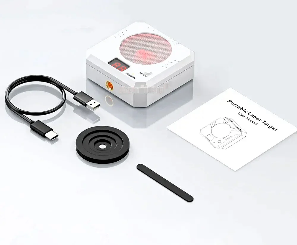 Package Includes: 1x NEW Laser Trainer Target, 4x Film Covers (Sizes: 60mm / 45mm / 35mm / 25mm / 15mm), 1x Charging Cable