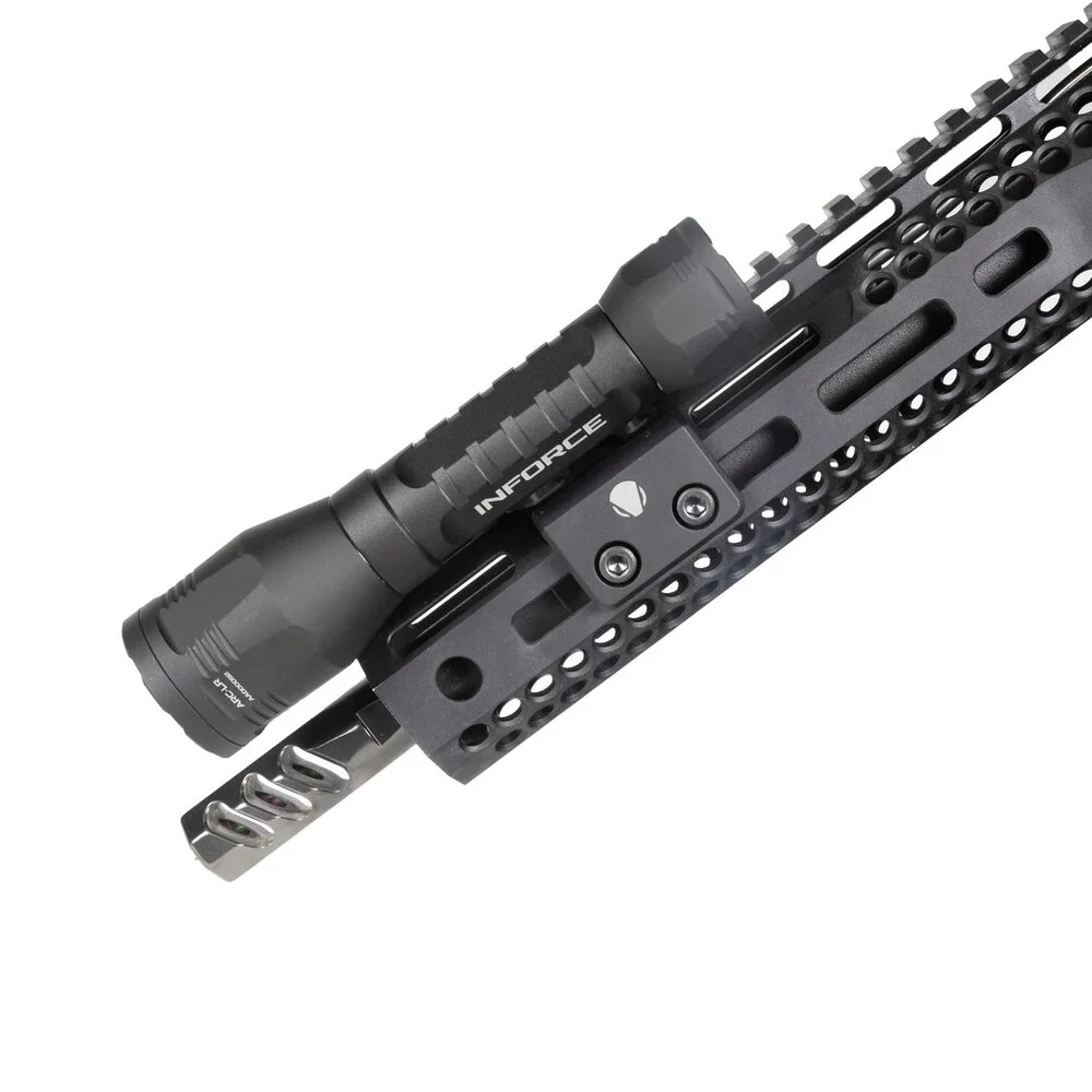 Die INFORCE ARC ist eine vollwertige taktische Waffenlampe für Profis und ambitionierte Sportschützen. Die integrierten ARC-Montage passt an M-LOK Systeme und kann mit Zubehör für Picatinny-Schienen aufgerüstet werden. Die ARC-Serie wird aus 6061 T6 Aluminium mit einer gehärteten Lackierung vom Typ MIL-SPEC III gefertigt. Sie sind IPX8 wasserdicht bis 20 Meter Tiefe und erfüllen die MIL-STD-810H-Spezifikationen. Optional können sie mit Kabelschalter erweitert werden. Sowohl die ARC350 als auch die ARC650 ist als Handheld-Taschenlampe erhältlich mit den gleichen technischen Spezifikationen.