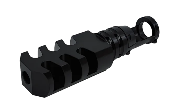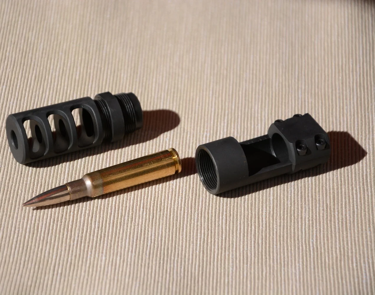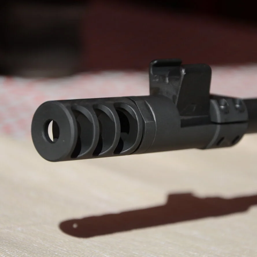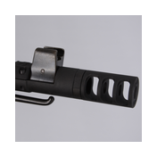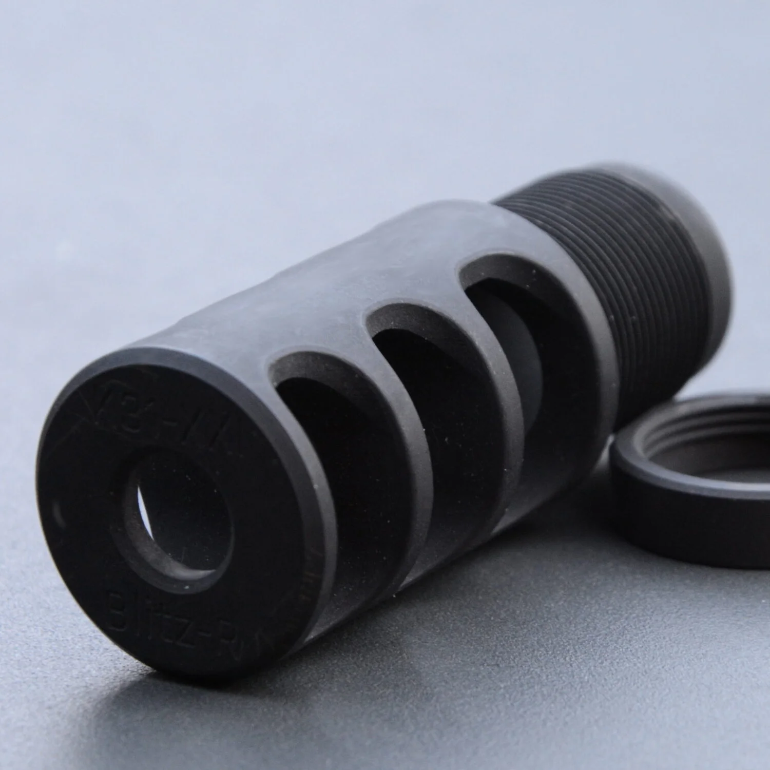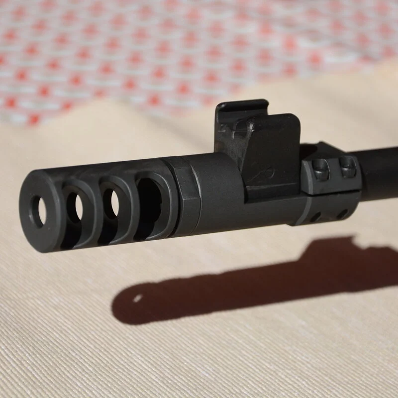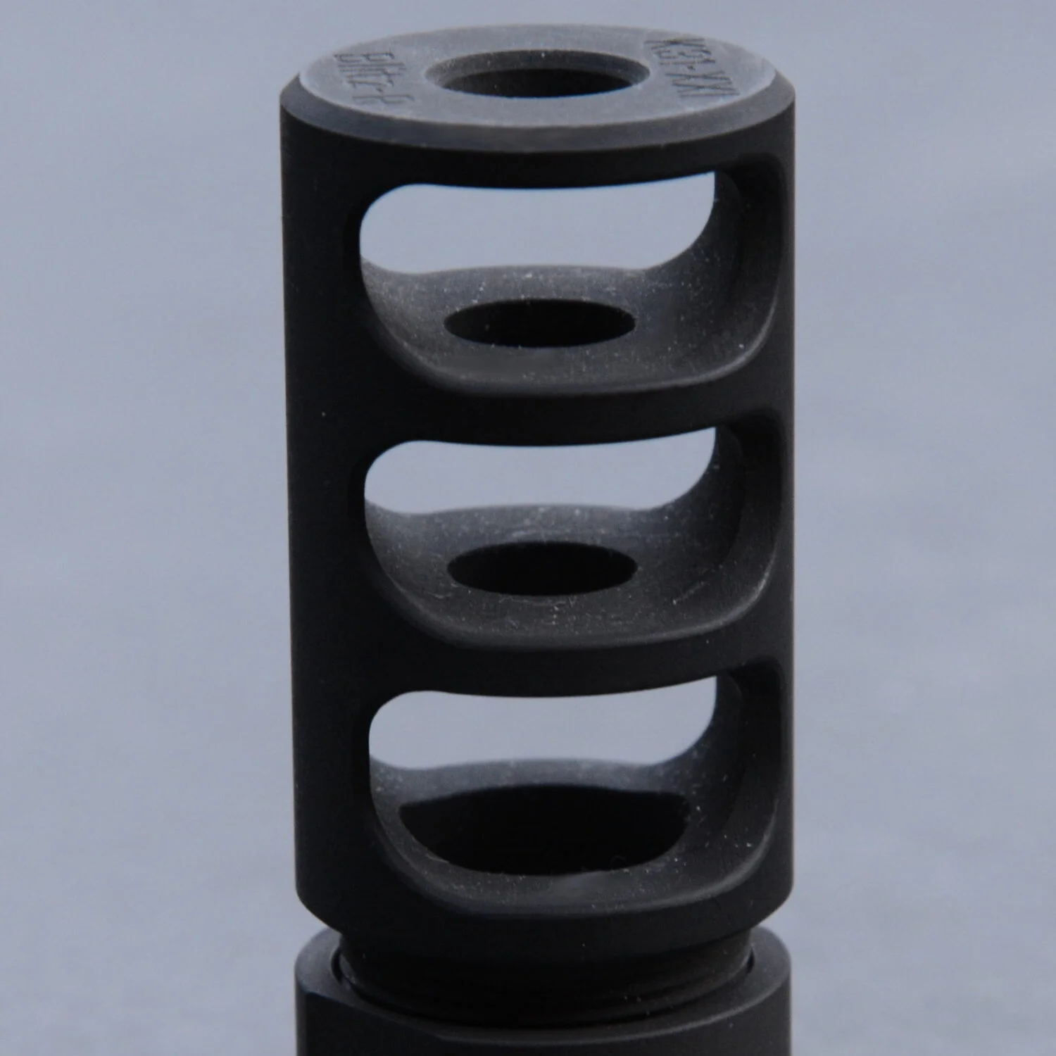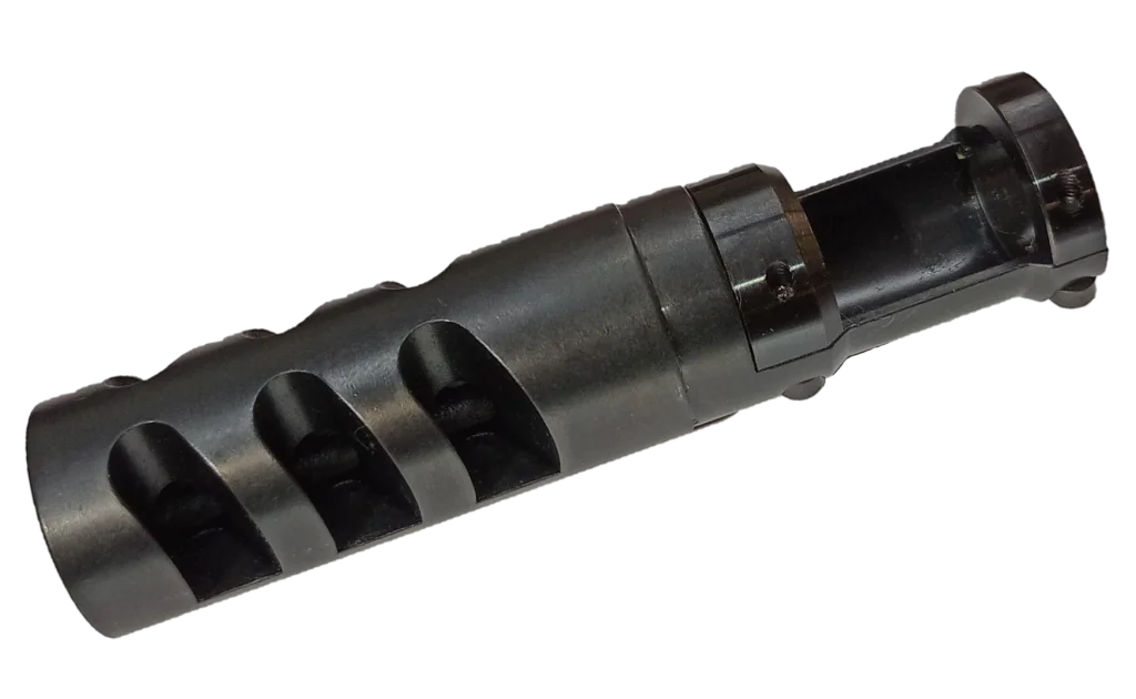 Hochwertige und leichte Mündungsbremse mit einer Manganhophosphat Oberflächenbehandlung für ultimativen Schutz vor Korrosion und Verschleiss. Dieser Muzzle Brake bietet eine signifikante Reduzierung des Rückstosses und eine moderate seitliche Druckwelle, um den Spotter und andere Kameraden zu "schonen". Das Kit (Bremse und Adapter) wiegt 158g und sorgt für Komfort beim Aufrechterhalten der Schussposition. Die Bremse verlängert die Waffe um 5mm. Masse: 10.7 - 2.6 - 2.4 cm - Montageanleitung