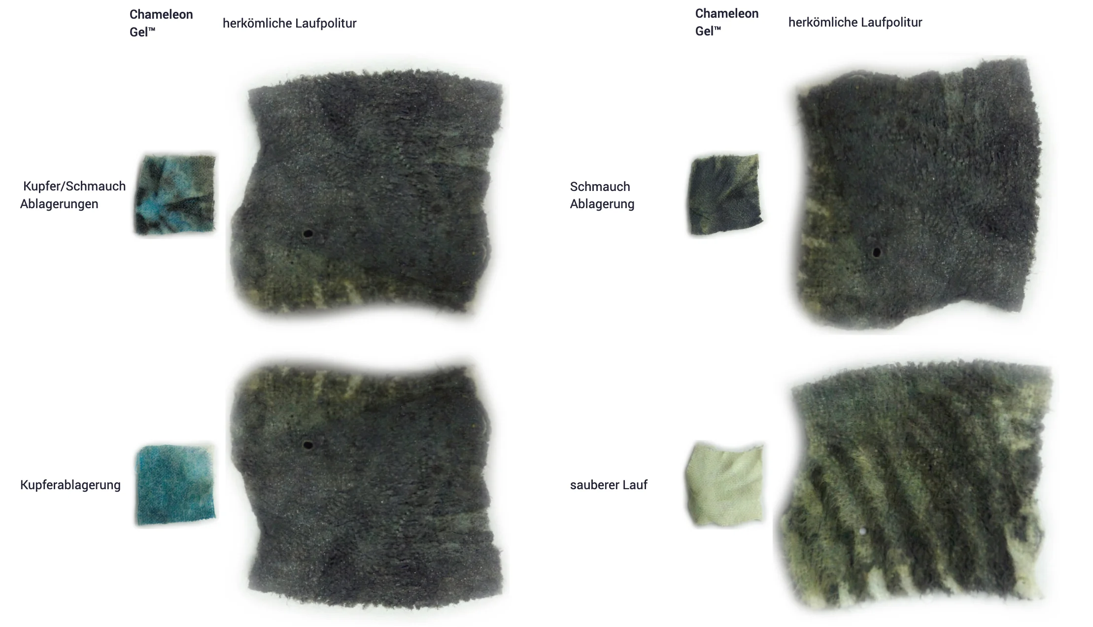 - Löst selbsttätig Tombak-, Kupfer-, Zink- und Bleiabschmierungen im Lauf