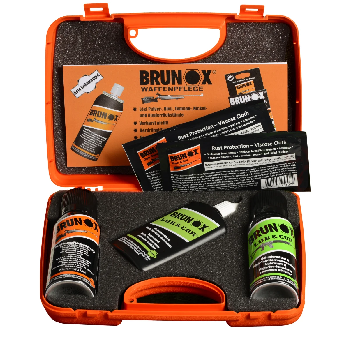 Diese Box von Brunox enthält alles was für die Reinigung und Schmierung deiner Waffe benötigt wird. Ideal als Aufbewahrung zu Hause oder für Unterwegs auf Schiessstand oder an Wettkämpfen. Die Waffenpflegebox enthält: 1x BRUNOX® Waffenpflegespray 100 ml Pumpzerstäuber, 1x BRUNOX®LUB&COR ® 100 ml Bulk, 1x BRUNOX®LUB&COR ® 100 ml Aerosol, 2x BRUNOX® Waffenpflege-Viskosetücher 6g