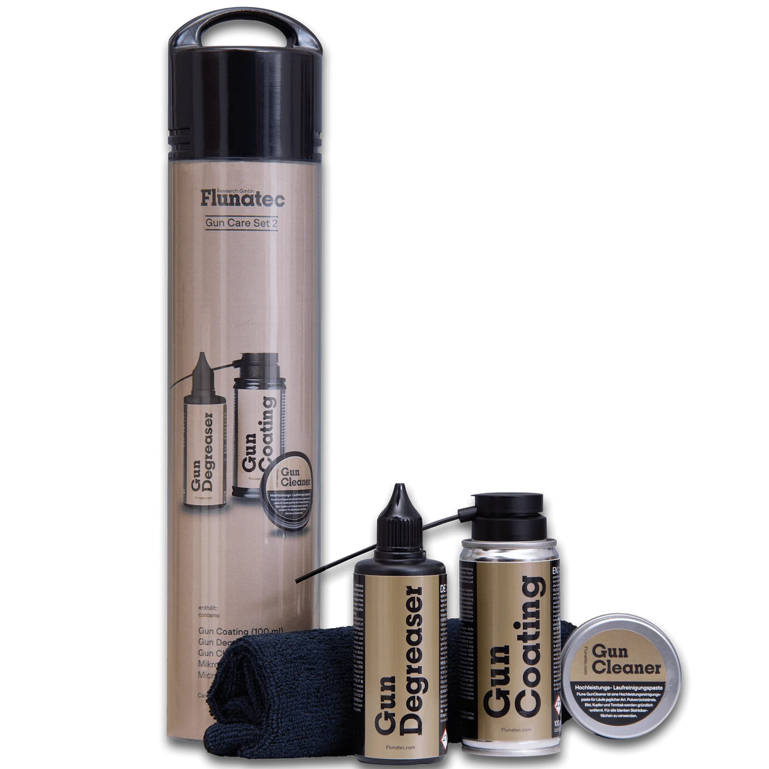 Mit dem Fluna Waffen Pflegeset 2 wird Waffenreinigung zum Kinderspiel. Mit drei Fluna Tec Hauptprodukten und passendem Mikrofasertuch reinigen Sie Ihre komplette Waffe ohne Öl. Die im Fluna Waffen Pflegeset 2 enthaltenen Produkte reichen aus, um Ihre technisch anspruchsvollen Waffen - ohne Öl - komplett zu reinigen und zu pflegen. Reinigen Sie alle Waffenteile, befreien Sie den Lauf von Metallabschmierungen und schützen Sie Ihre Waffe mit der Hochleistungs-Keramikbeschichtung.
