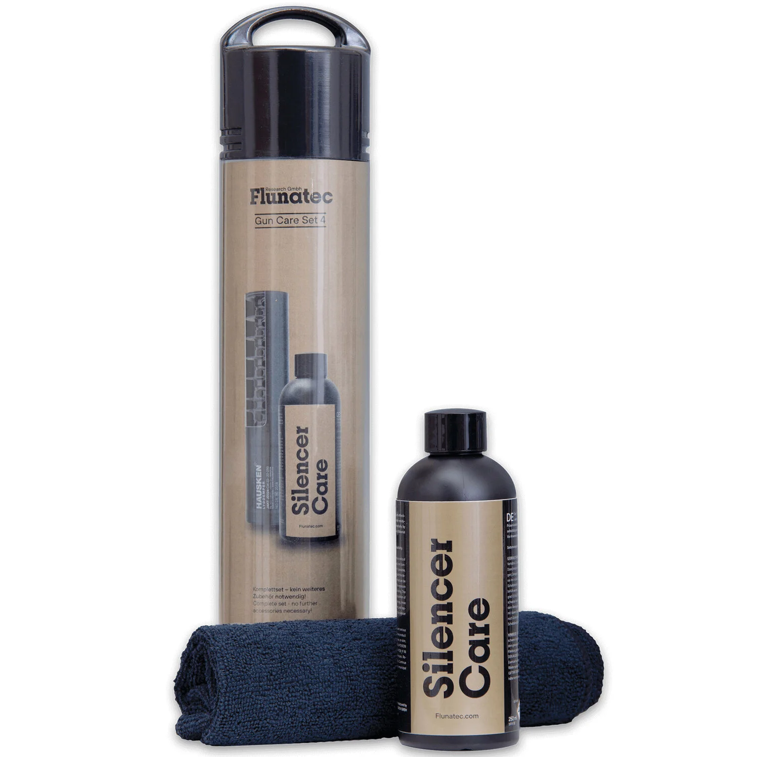 Wie für alle Teile einer Schusswaffe gilt auch für den Schalldämpfer: Regelmässiges Reinigen schützt vor Beschädigungen und erhält den Wert des Schalldämpfers. Nach etwa 50 bis maximal 200 Schuss sollten Sie Ihren Schalldämpfer einer gründlichen Reinigung und Konservierung unterziehen – am besten mit dem Fluna Schalldämpfer-Reinigungskonzentrat.
