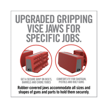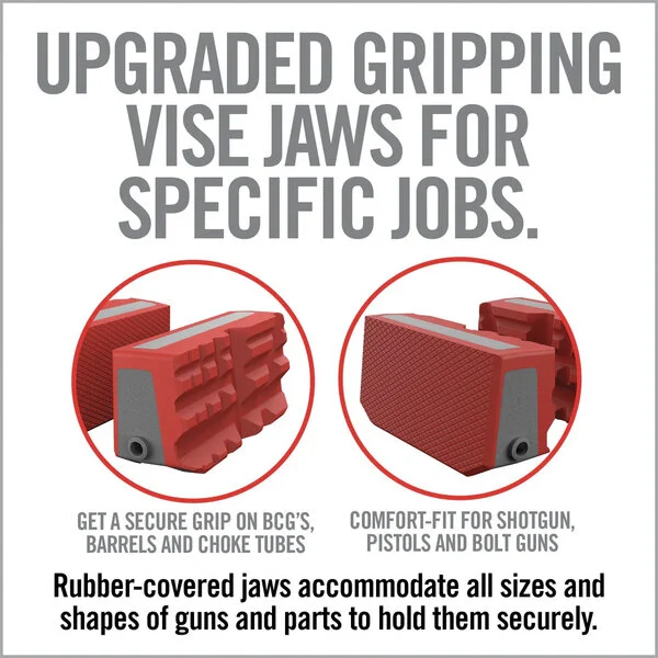 Multiachsen-Tischschraubstock mit TORQ-LOK. Der Armorer's Master Vise von RealAvid kann nahezu alles. Er wurde speziell für die Wartung von Waffen konzipiert. Egal, ob Sie Zielfernrohre und Zubehör anpassen, reparieren, reinigen oder montieren möchten, der Schraubstock wird die Aufgabe meistern. Positionieren Sie Ihre Waffe schnell in jede beliebige Ausrichtung, ohne diese jemals aus dem Schraubstock zu entfernen. Setzen Sie den Torq-Lok-Stift ein, um grosse Kräfte auszuüben. Verwenden Sie die abnehmbaren und umkehrbaren Gun-Fit-Backenhülsen für bestimmte Pistolengriffe oder drehen Sie den Nivellierknopf für eine einfache Montage und Nivellierung von Zielgeräten.