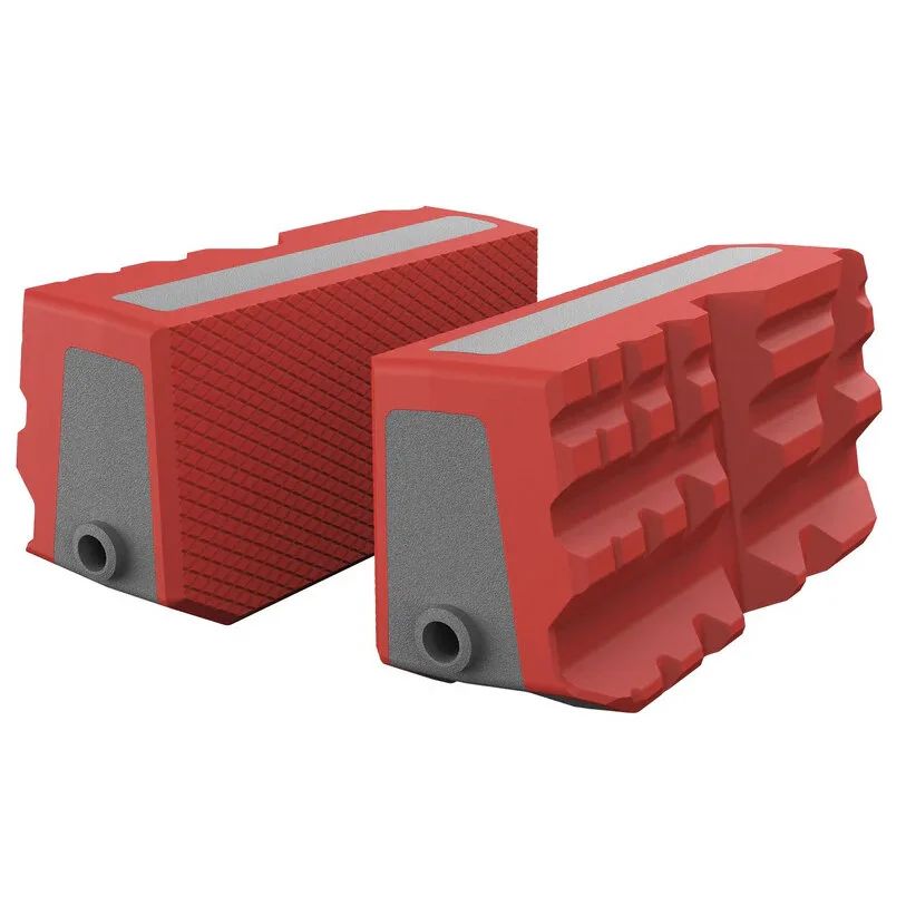 Optional sind die Backen Smart-Jaws erhältlich, welche einfach über die Metallbacken gestülpt werden und so eine Vielzahl von materialschonenden Montagemöglichkeiten bieten. Die Backen können auf beide Seiten montiert werden und bieten flache als auch gerippte Flächen